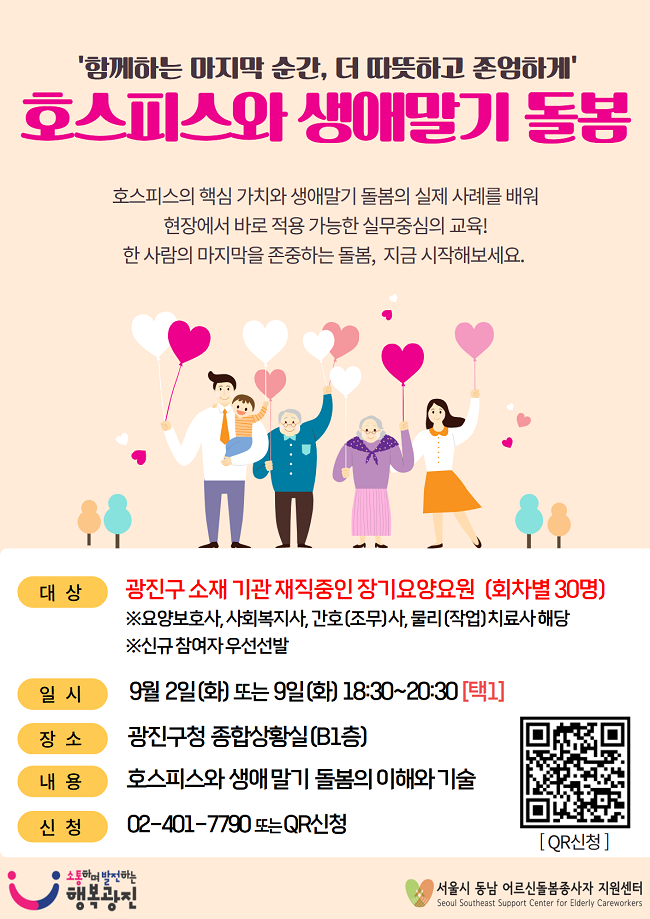 교육명 : [외부] 광진구 장기요양요원 직무역량강화 교육(호스피스와 생애말기 돌봄의 이해와 기술 )