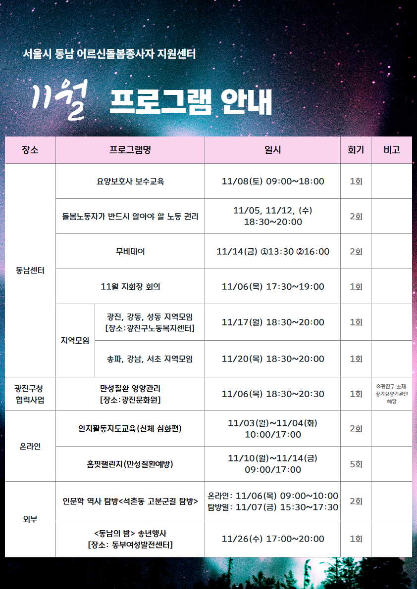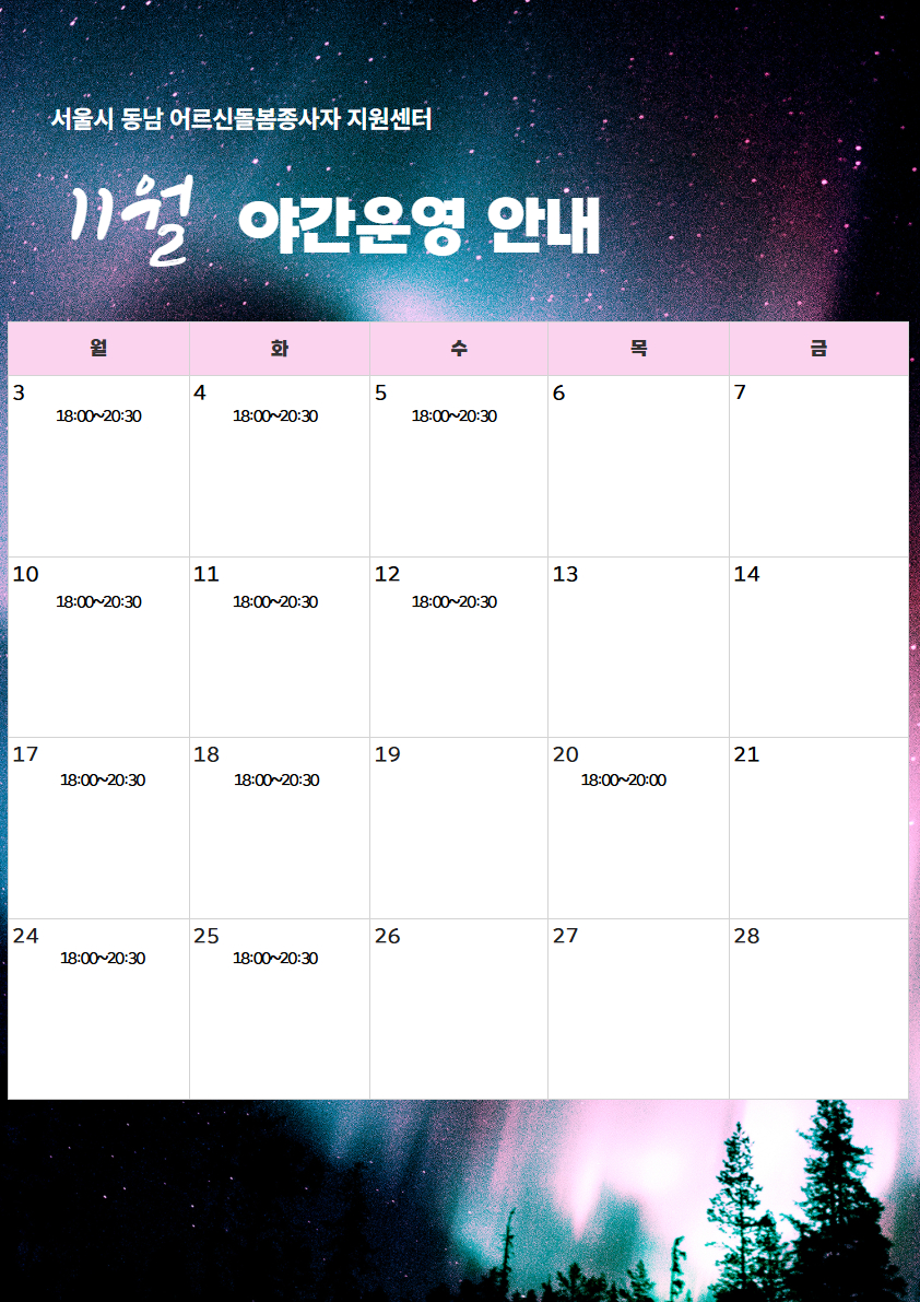 [공지] 11월 프로그램 및 야간운영 안내