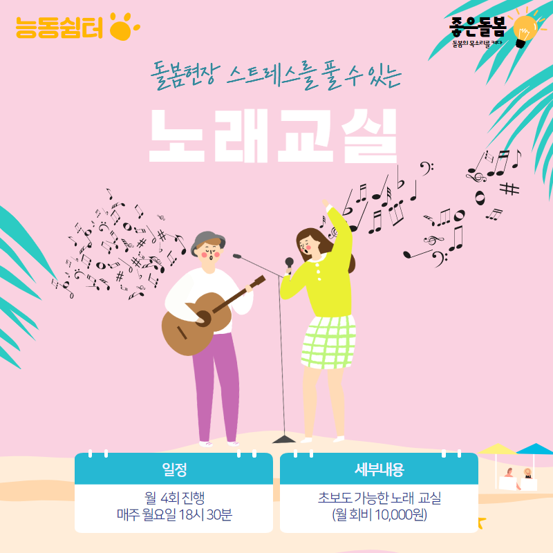 - 일정: 노래교실(매주 월요일 18:30~19:30)