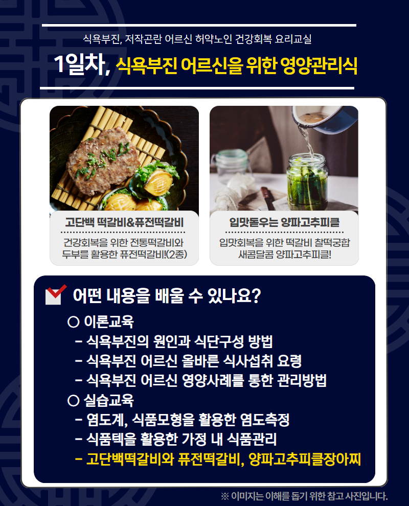 - 내용: 식욕부진 어르신을 위한 영양관리식(이론+실습)